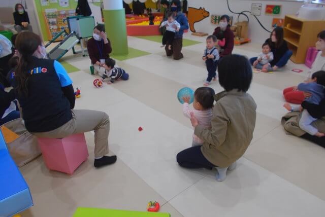 緊張気味だった子もお父さんお母さんのお膝の上で徐々に笑顔になってきました。