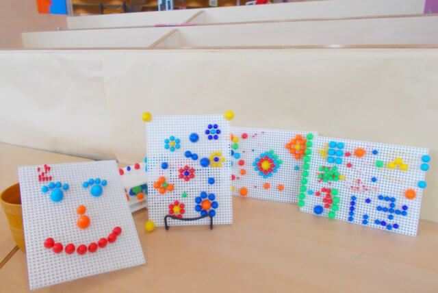 白いボードに色んな大きさのペグを刺して遊ぶファンタカラー。