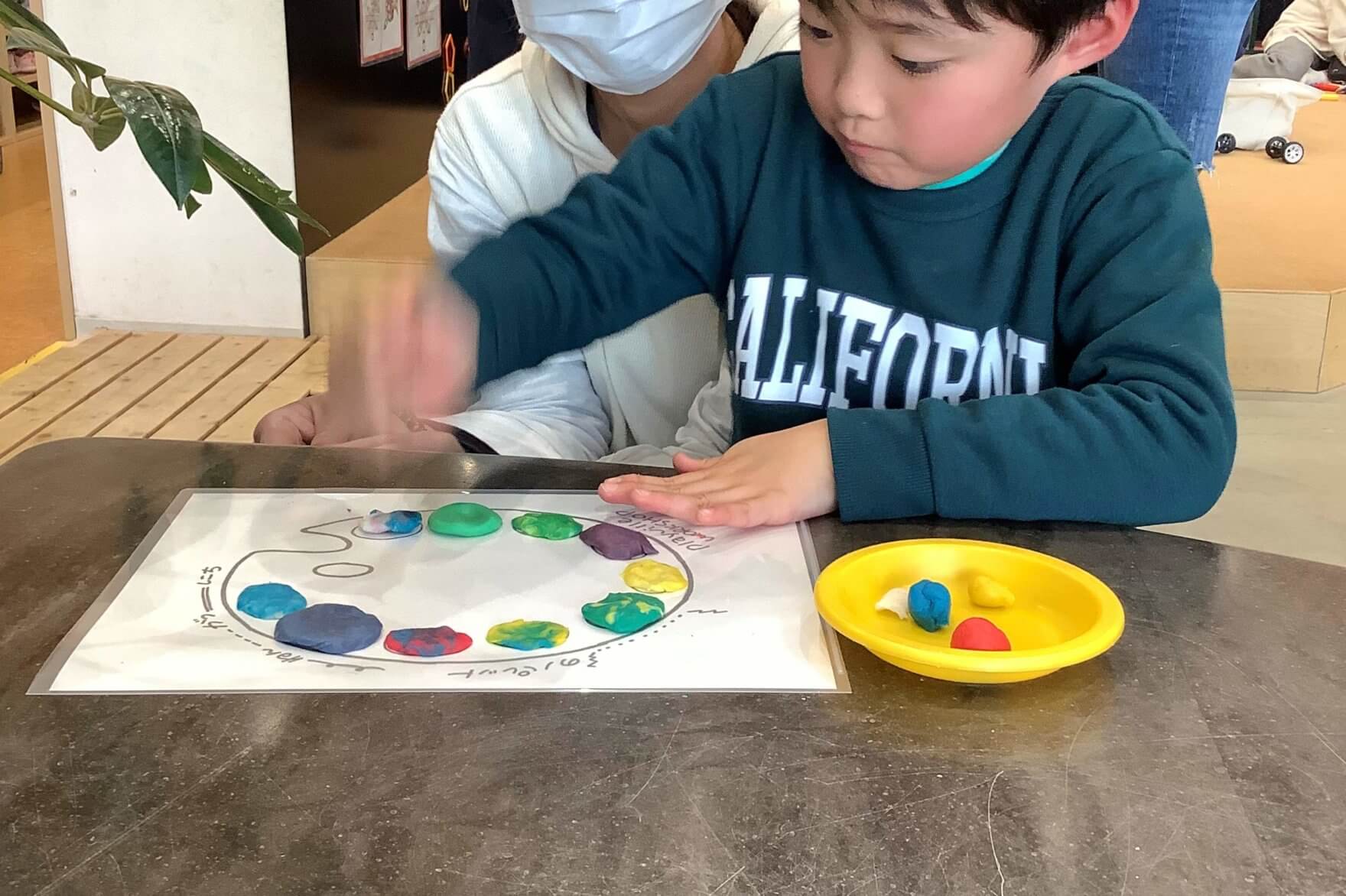 本日は「かんてんネンドで混色あそび」の様子を紹介します。