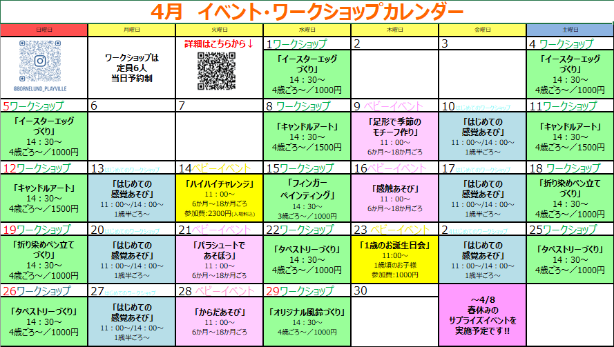 2026年4月のイベント・ワークショップについてお知らせです。