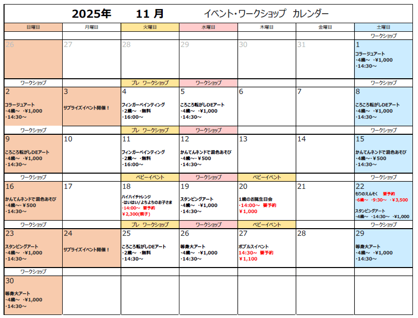 11月の大阪城公園店のイベント・ワークショップのお知らせをいたします。