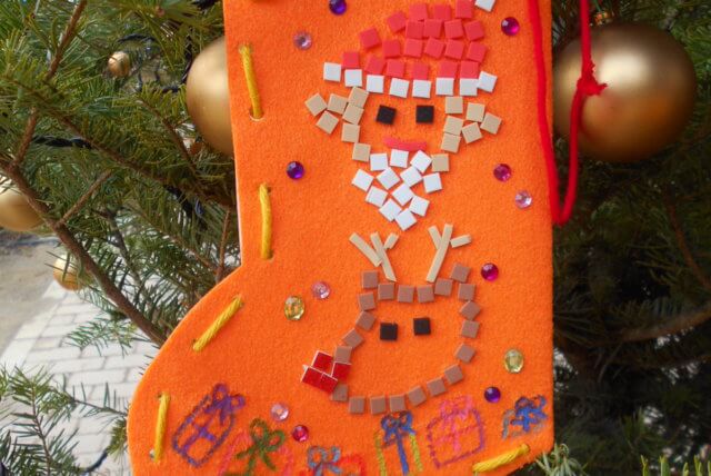 靴下の形に切ったヴィベールに飾り付けをして、クリスマスの靴下を作ろう!