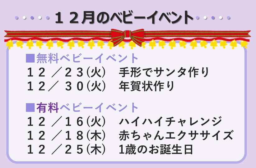 赤ちゃんと親子で参加できるイベントを開催しています。