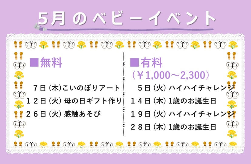 赤ちゃんと親子で参加できるイベントを開催しています。