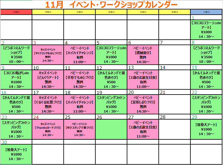 いつもプレイヴィル天王寺公園店をご利用いただきありがとうございます。 11月のイベントカレンダーが出来上がりましたのでお知らせいたします!